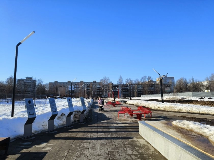 Зимой горожане обращали внимание на недоделки: «гуляющую» плитку, торчащие элементы, щели у фонтанов, просадку грунта и мусор по краям. Отмечали и слабую мемориальную часть — только фамилия «Ткаченко» без имени, без стелы и подробной информации.