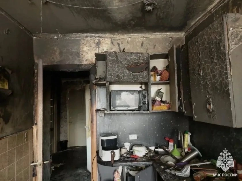 В огне полностью выгорели балкон и кухня на площади 12 квадратных метров, повреждены натяжные потолки на площади 20 квадратных метров, закоптилась квартира на 43 квадратах. Предварительная причина возгорания – неисправная работа электроприбора на балконе.