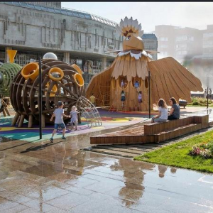 На площади Юности в рамках благоустройства установят детскую площадку в образе птицы-говоруна. Также здесь появятся скамейки, освещение и новые зелёные насаждения, чтобы сделать площадь точкой притяжения для семей с детьми и местом для повседневного отдыха.