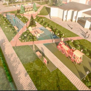 Проект — тематическое общественное пространство «Путешествие за счастьем» по мотивам повести «Чук и Гек». Планируется: детская площадка в виде поезда, песочница, интерактивные бизиборды, арт-объекты. Дополнительно — спортивная зона «Тропа испытаний» и декоративные еловые посадки, которые создадут уютную атмосферу для семейного отдыха.