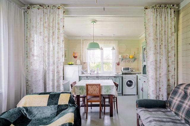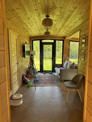 Закрывает подборку каркасный дом 2019 года постройки площадью 57 кв.м на участке 5 соток, пригодный для круглогодичного проживания. В доме три комнаты и санузел, проведены интернет и телевидение, налажена система подачи воды из колодца с подогревом, установлен септик. На ровном участке расположены хозблок и сарай. В шаговой доступности — магазин и остановка общественного транспорта.