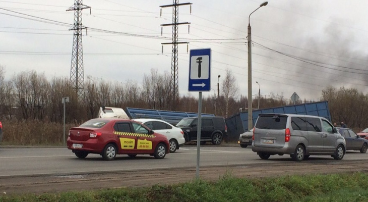 Уходил от удара: в Ярославле перевернулся зерновоз. Видео