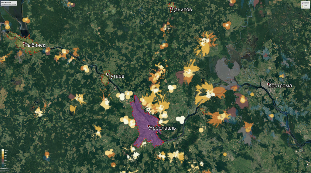 Если говорить про поездки абонентов по нашему региону, то в основном маршруты сосредоточены не далее 60 км от города. Что характерно – в большинстве случаев любимые локации находятся вблизи водоемов.