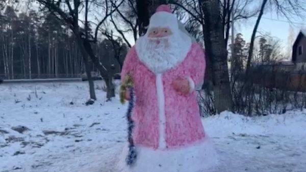 В Заволжском районе на проспекте Авиаторов появился снежный Дед Мороз в красном костюме и с мешком подарков. Двухметровую фигуру в частном секторе слепил местный житель.
