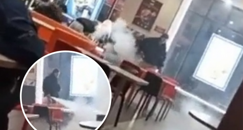 Вечером 26 сентября в центре Ярославля в ресторане быстрого питания KFC молодые ребята устроили беспорядок: они взяли огнетушитель и распылили его содержимое прямо в центре зала. Происшествие заснял один из очевидцев.