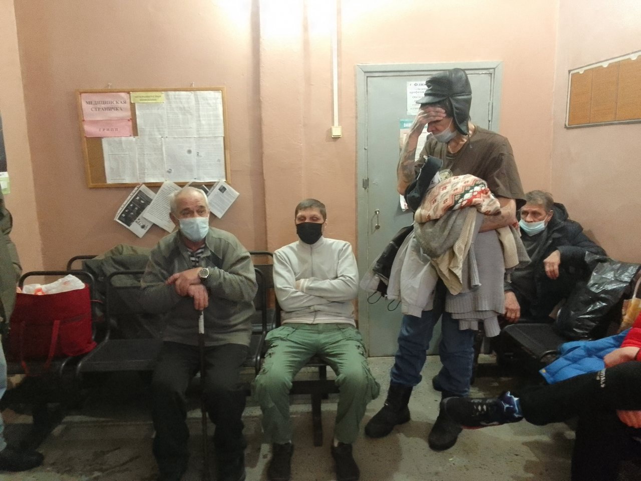 В ночлежку может попасть каждый, но к новеньким присматриваются. Каждую среду в 17 часов здесь собирается небольшая очередь. Чтобы заселиться надо пройти медосмотр, проверяют на вшей, инфекции. Смотрят одежду на наличие запрещенных веществ и оружия. Если все нормально — добро пожаловать!