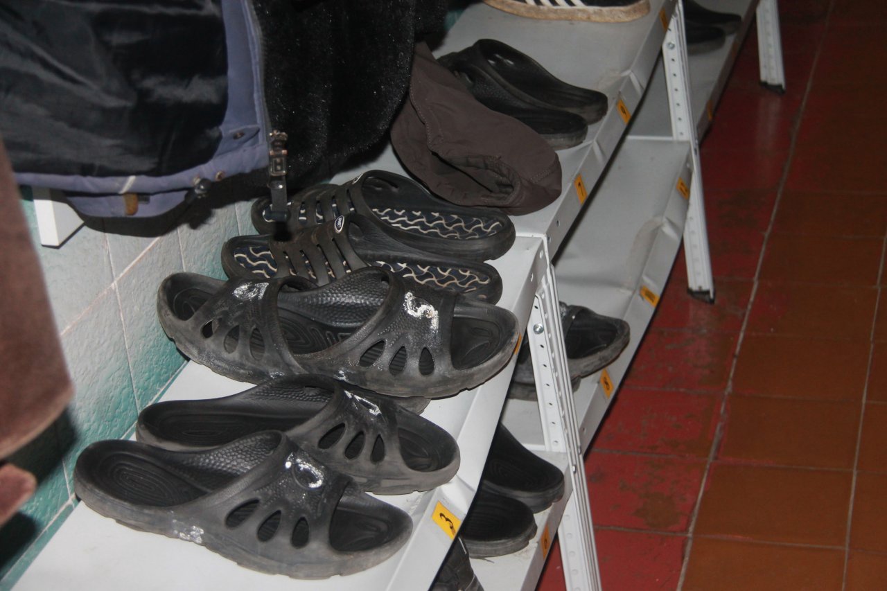 Все скромно, но чисто. Неприятного запаха нет. Чем-то похоже на очень дешевый хостел. В общей сложности ночлежка может принять 34 человека, но сейчас она заполнена меньше чем на половину. Здесь каждый может принять душ, оставить вещи на пронумерованных стеллажах. В общей комнате есть холодильник и телевизор. Стоит полка с книжками, но ей мало кто интересуется.
