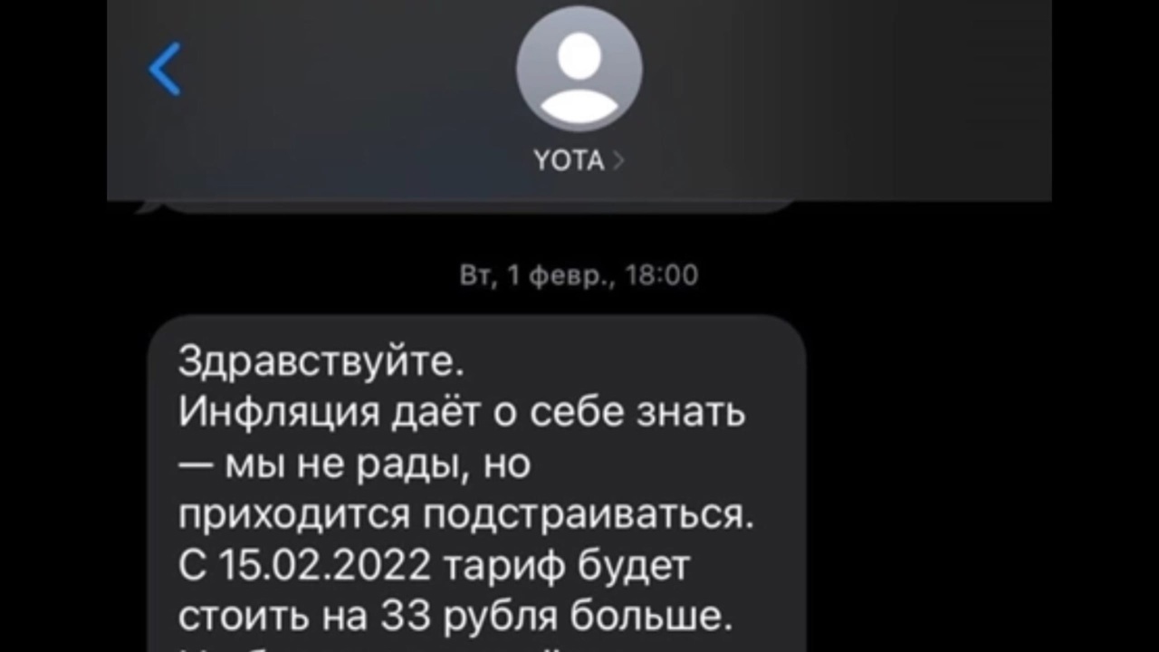 Ярославна Екатерина рассказала Про Городу, что повысили цены и на связь и для абонентов "Йоты": еще с 15 февраля стоимость выросла на 33 рубля, виной всему, как оказалось, инфляция. "Инфляция дает о себе знать - мы не рады, но приходится подстраиваться", - проинформировали в "Йоте":