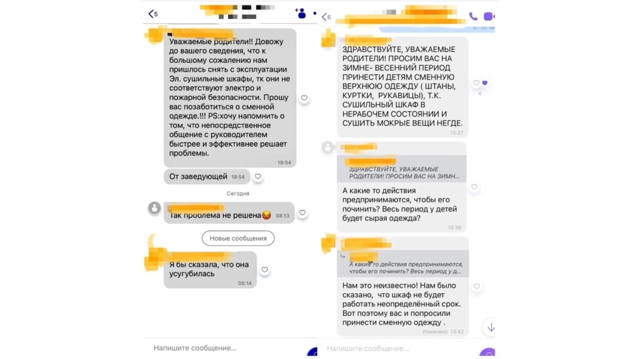 - Два дня назад (в понедельник. - Прим. ред.) заведующая МДОУ сообщила, что во всем детском саду выведены из строя сушильные шкафы, соответственно, сад не может обеспечить просушивание верхней детской одежды после прогулок, - поведала Александра.