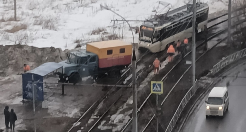 Объезжал ямы: в Ярославле трамвай улетел с рельсов