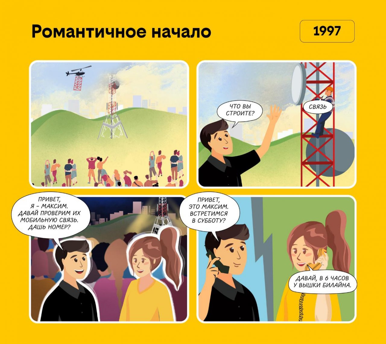 За 31 год работы билайн построил десятки тысяч базовых станций. Это не просто железные предметы. С базовыми станциями связаны истории, наполненные человеческими эмоциями. Это истории не только экспертов билайна, которые строили сеть, но и людей, которые благодаря им могут оставаться на связи. К 31-летию билайна мы нырнули в наши архивы и превратили в комиксы несколько сюжетов, отражающих важные этапы в развитии сети.