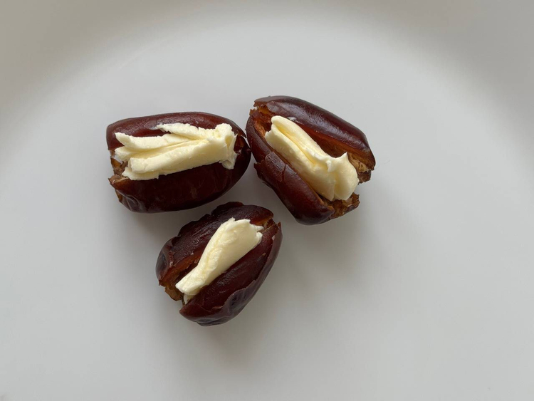 Финики разрезают вдоль, удаляют косточку. Внутрь каждого плода помещают тонкий ломтик масла, посыпают солью и слегка прижимают половинки. Некоторые добавляют тёртый сыр или капельку мёда для разнообразия.