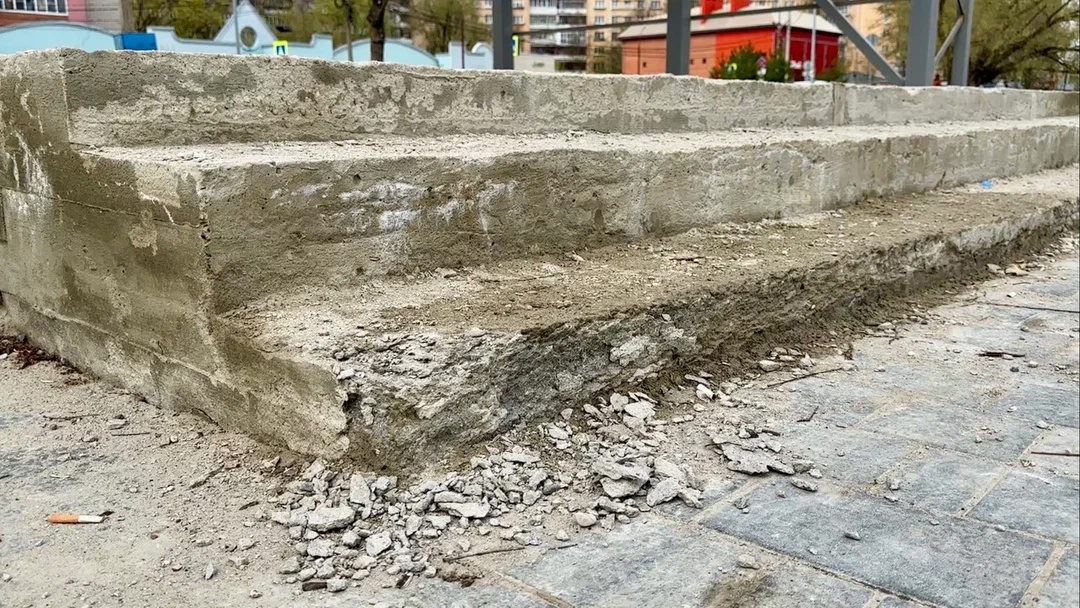"Плитка "гуляет", идёт волнами, её надо перекладывать. Возле центральной ели нет положенного по проекту освещения, торчит кабель. Бетонные ступени новой сцены крошатся", - описывают волонтеры "Народного фронта" увиденное.