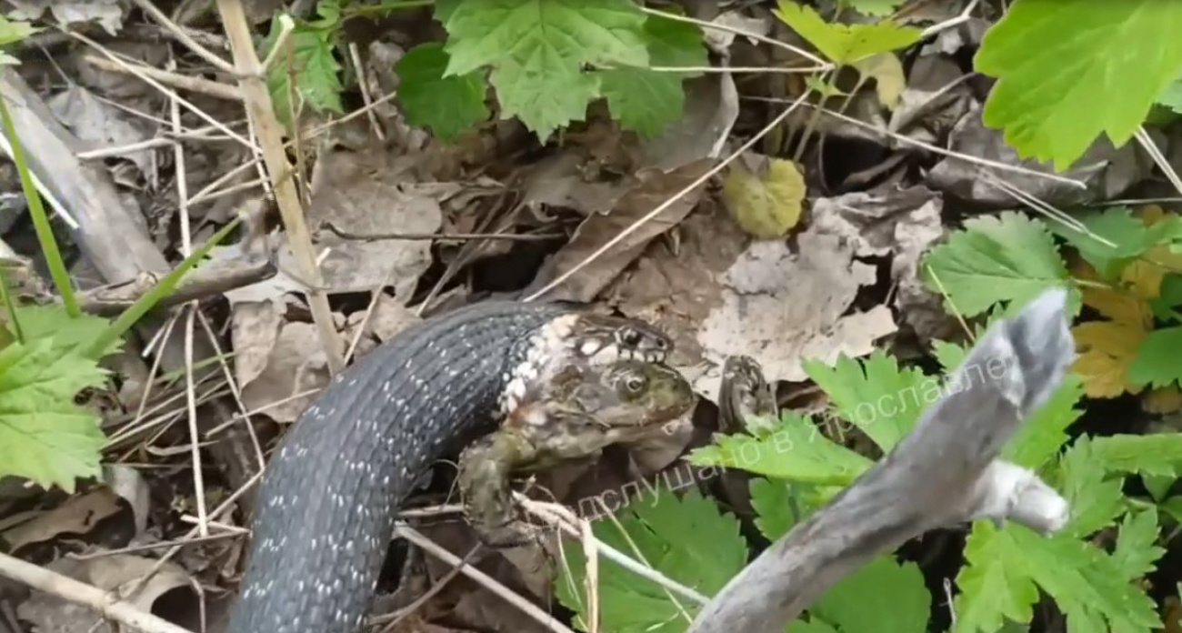 Около пруда в Коровниках ярославцы наткнулись на необычное животное. Оно было похоже на змею, но с лапами и двумя парами глаз. Люди не растерялись и сняли монстра на видео.