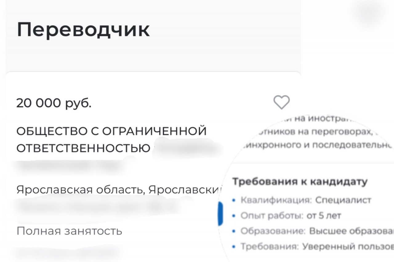 В Ярославском районе на платформах по поиску работы опубликовали вакансию на должность переводчика.