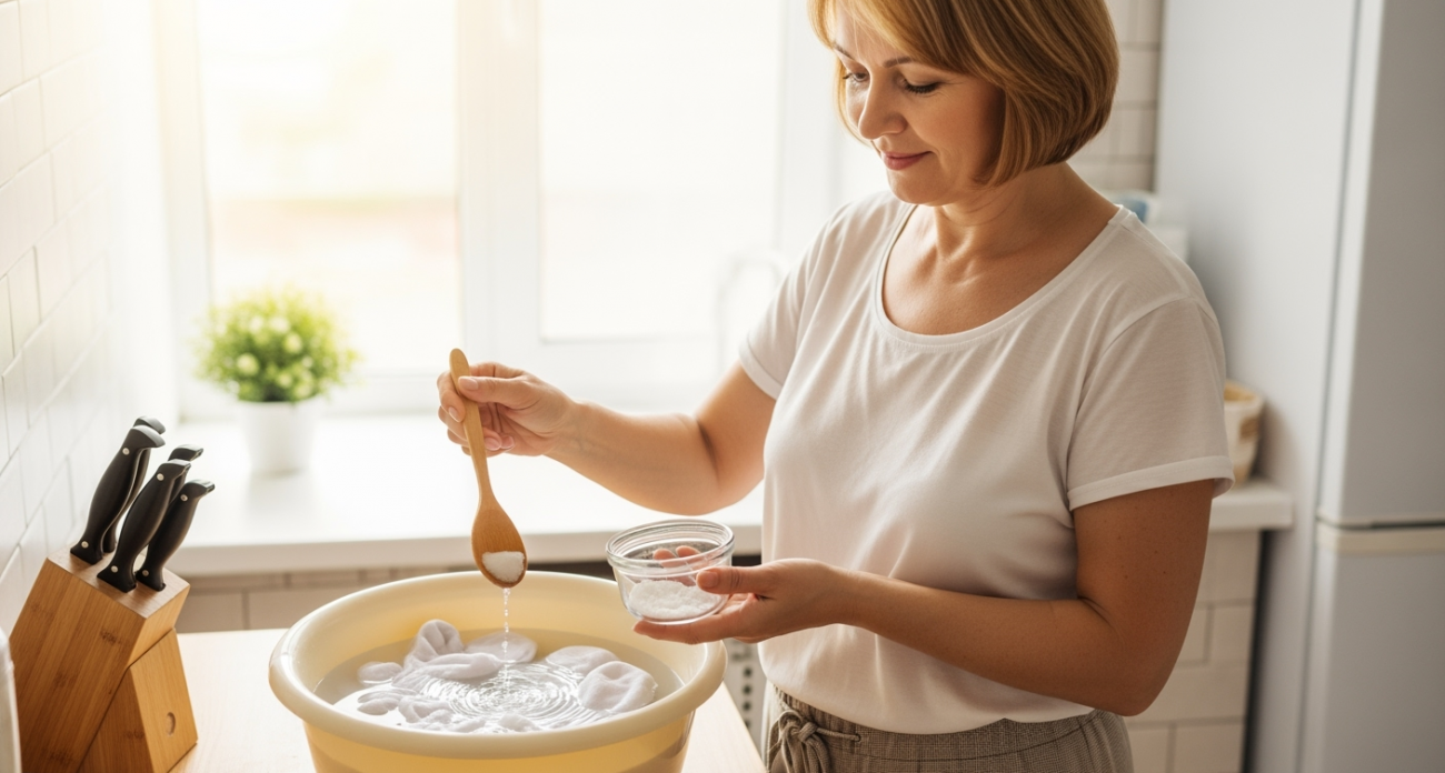 Добавляю 4 ложки в миску — и даже самые грязные носки станут белее снега: простой и полезный лайфхак