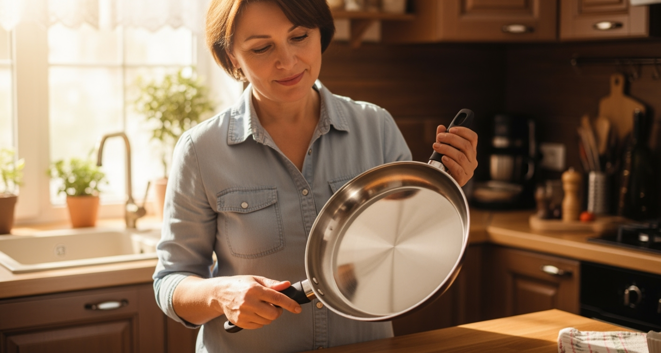 Помещаю сковороду в полиэтиленовый пакет, нагар исчезает мгновенно, больше ничего не пристает — любуюсь отражением