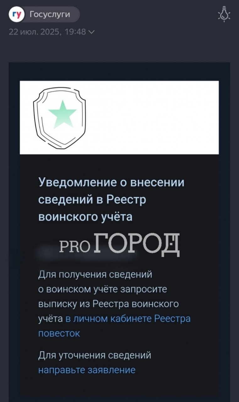 Мужчины из Ярославля начали получать в личных кабинетах на Госуслугах уведомления о внесении сведений в Реестр воинского учета.