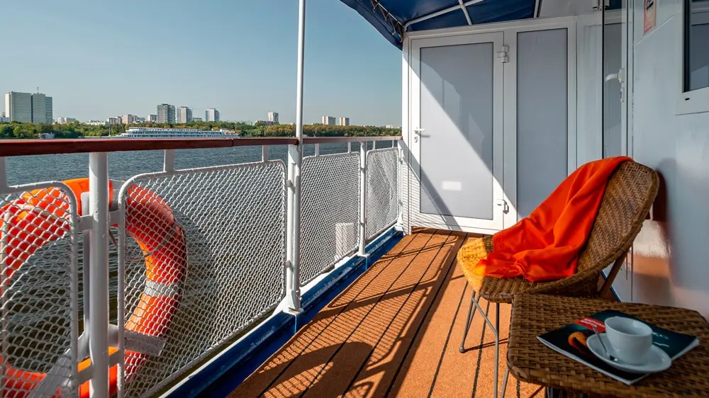 Они располагаются на шлюпочной палубе. В каюте есть обзорное окно, персональный балкон с мебелью для отдыха.