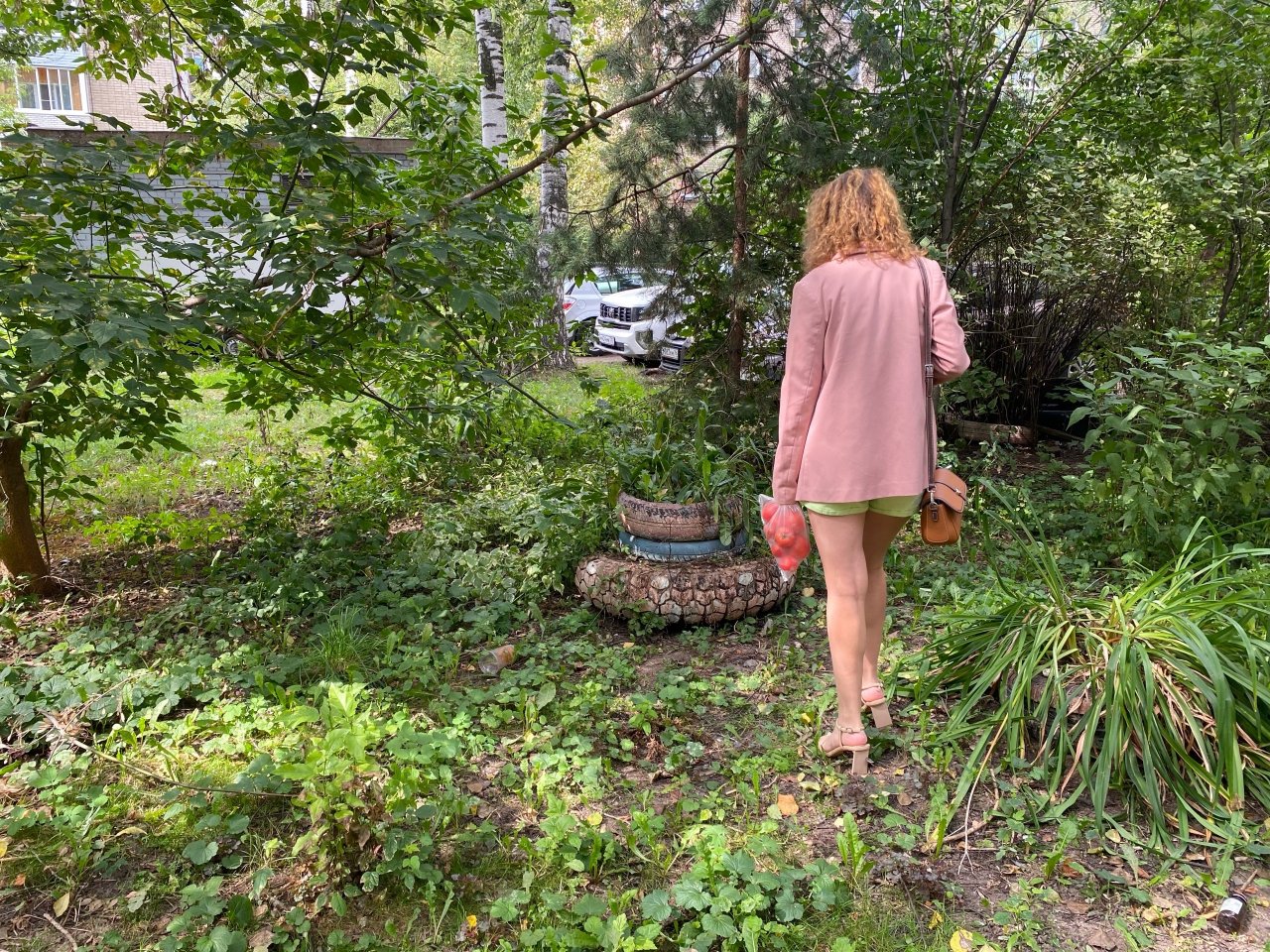 Шина в ее дворе служит небольшим ограждением маленькому каштанчику, который пытается вырасти. Жильцы положили шину, чтобы деревце не затоптали.