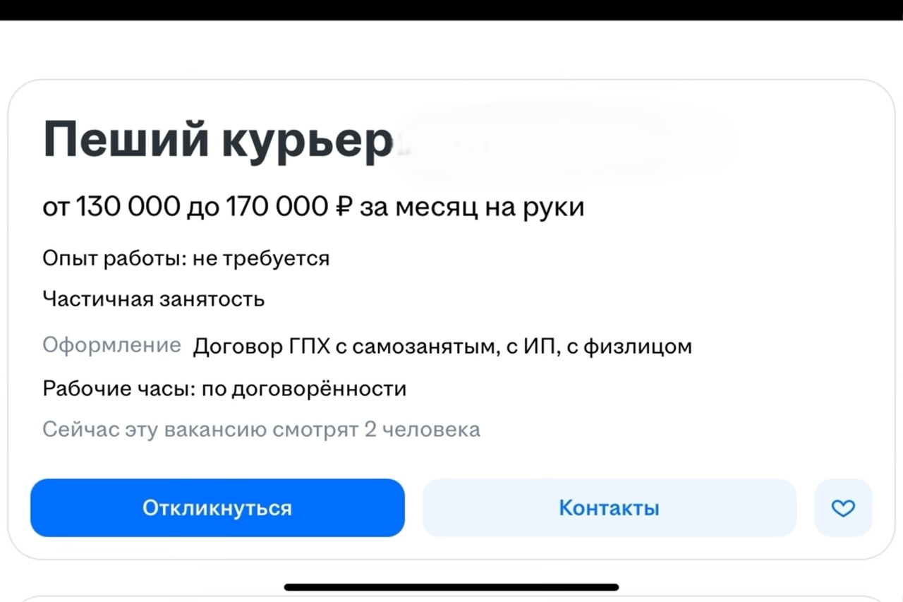 Будущему курьеру обещают зарплату до 170 тысяч рублей в месяц.