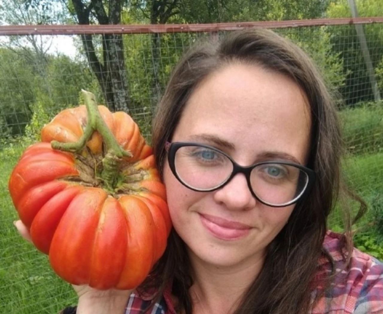 Ранее Ольга похвасталась огурцом в 5 килограммов и луковицу в 4 килограмма. Также Ольга выращивает огромные помидоры.
