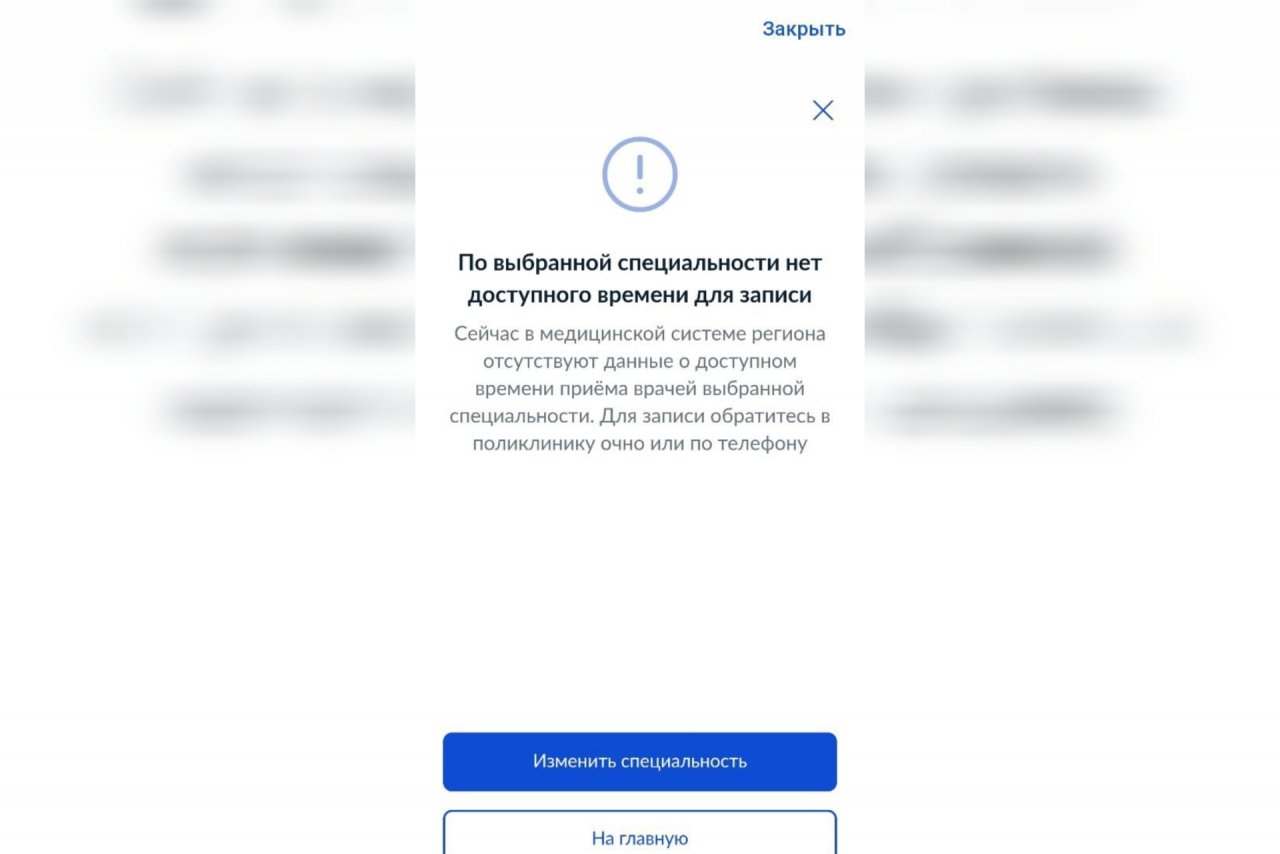"Пыталась записаться через госуслуги к терапевту, вот такой результат мне выдали", - прикладывает скриншот Дарья.