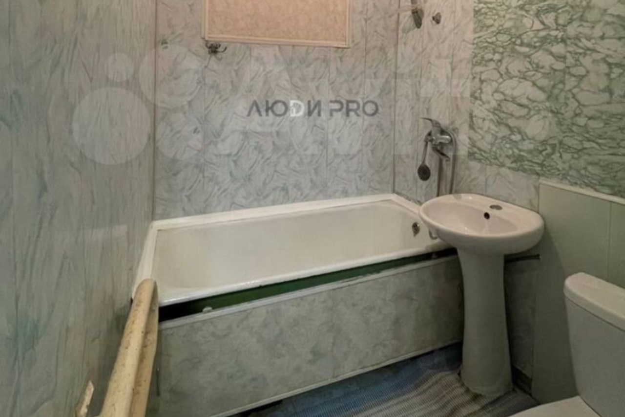 Выглядит жилье вполне опрятно. В ванной комнате места хватило даже под ванну, а не только душ. В квартире есть кухонный гарнитур и газовая колонка-автмат. Есть и места под хранение одежды в виде гардеробной. Жилье находится на первом этаже двухэтажного дома. Кирпичному дому 64 года.