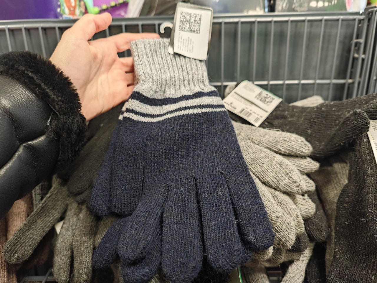 Простые мужские перчатки. Состав: 61% полиэстера, 29% акрила, 4% шерсти и по 3% вискозы и хлопка. Цена: 124 рубля.