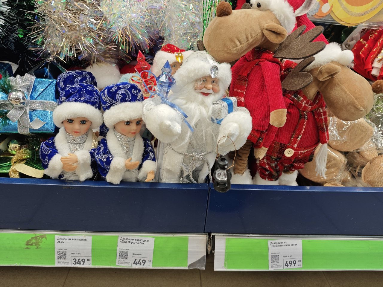 Всего за 800 рублей можно приобрести новогоднюю пару: Дед Мороз (30 см) и внучка Снегурочка (24 см). Дедушка обойдется в 449 рублей, внучка ровно на 100 рублей дешевле.