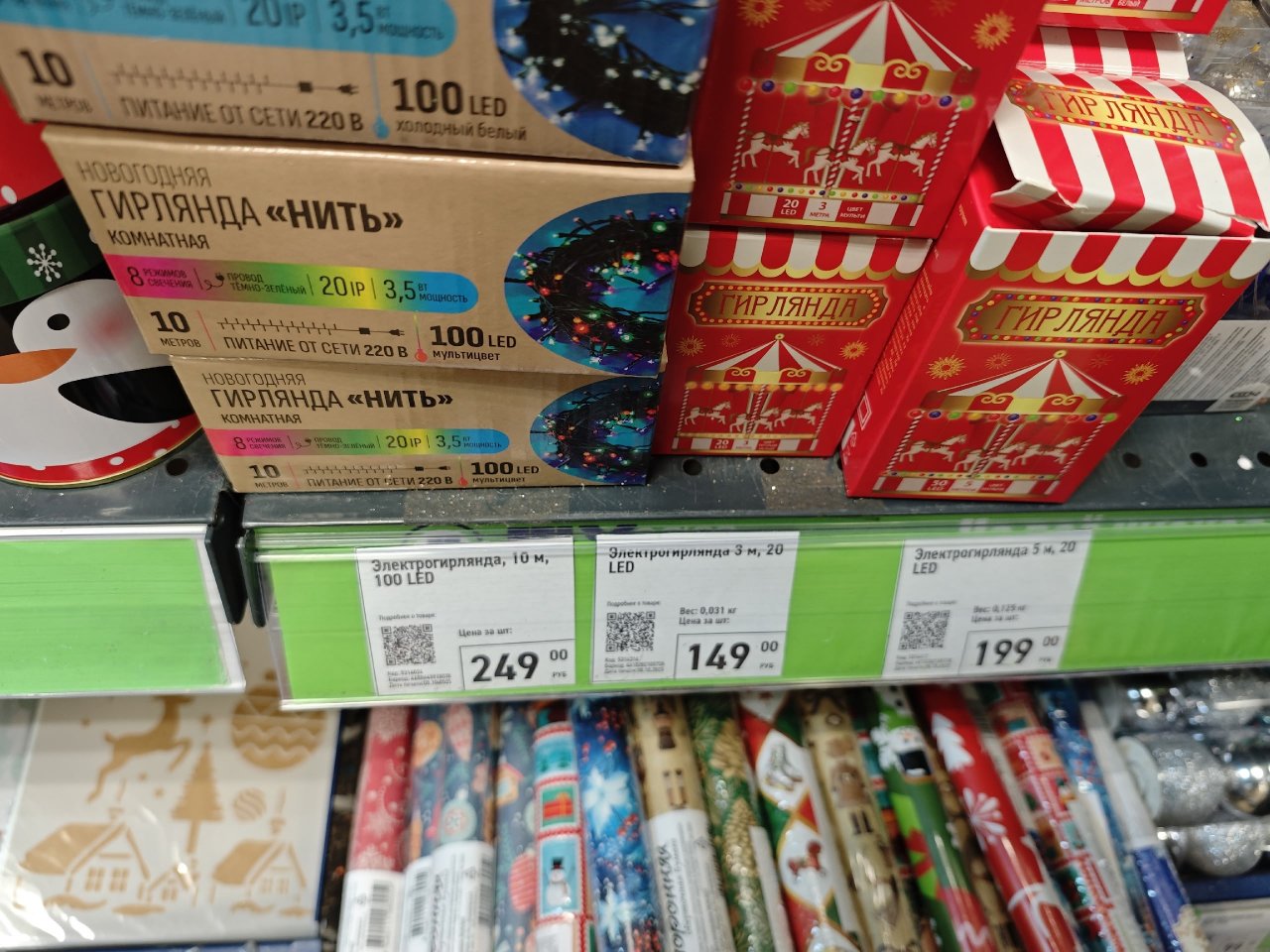 Гирлянды всех длин и расцветок: от 149 до 249 рублей.