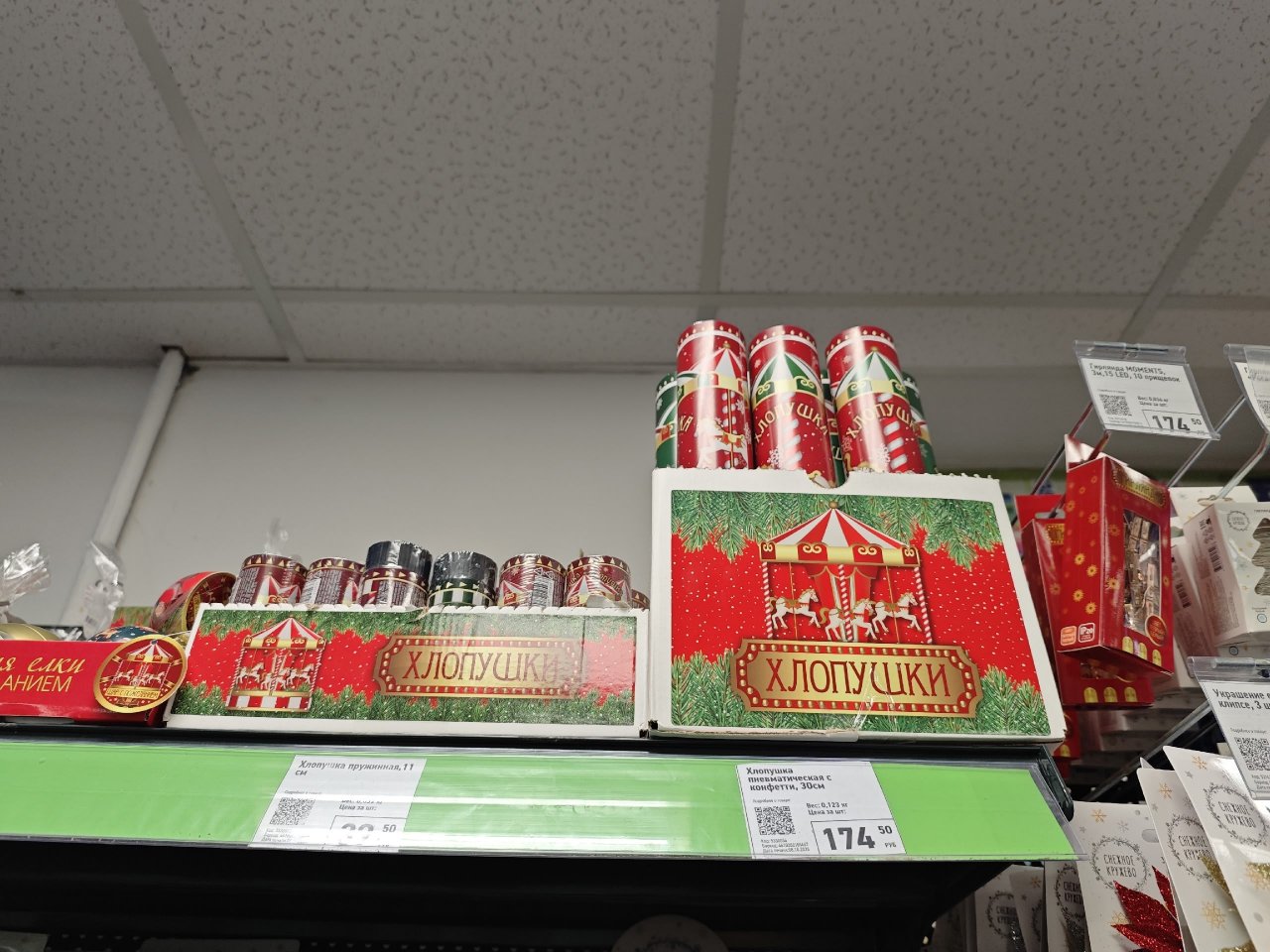 Пневматические хлопушки с конфети 30 см - 174 рубля.