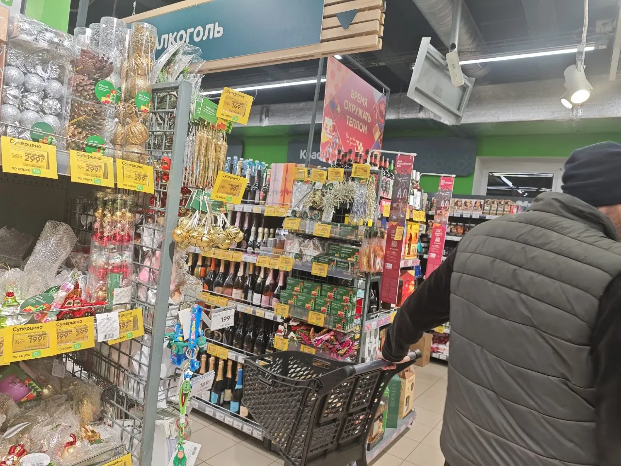 Горы новогодних товаров выросли у касс супермаркетов Ярославля