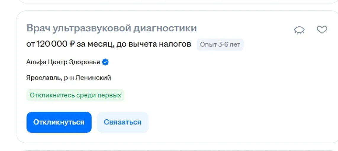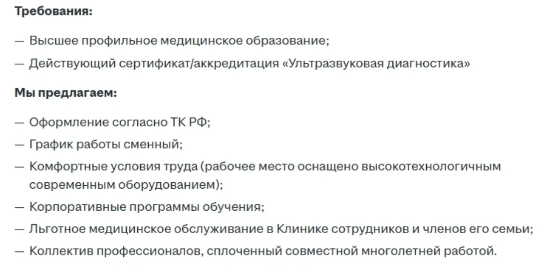 Следующей в списке стала вакансия врача ультразвуковой диагностики.