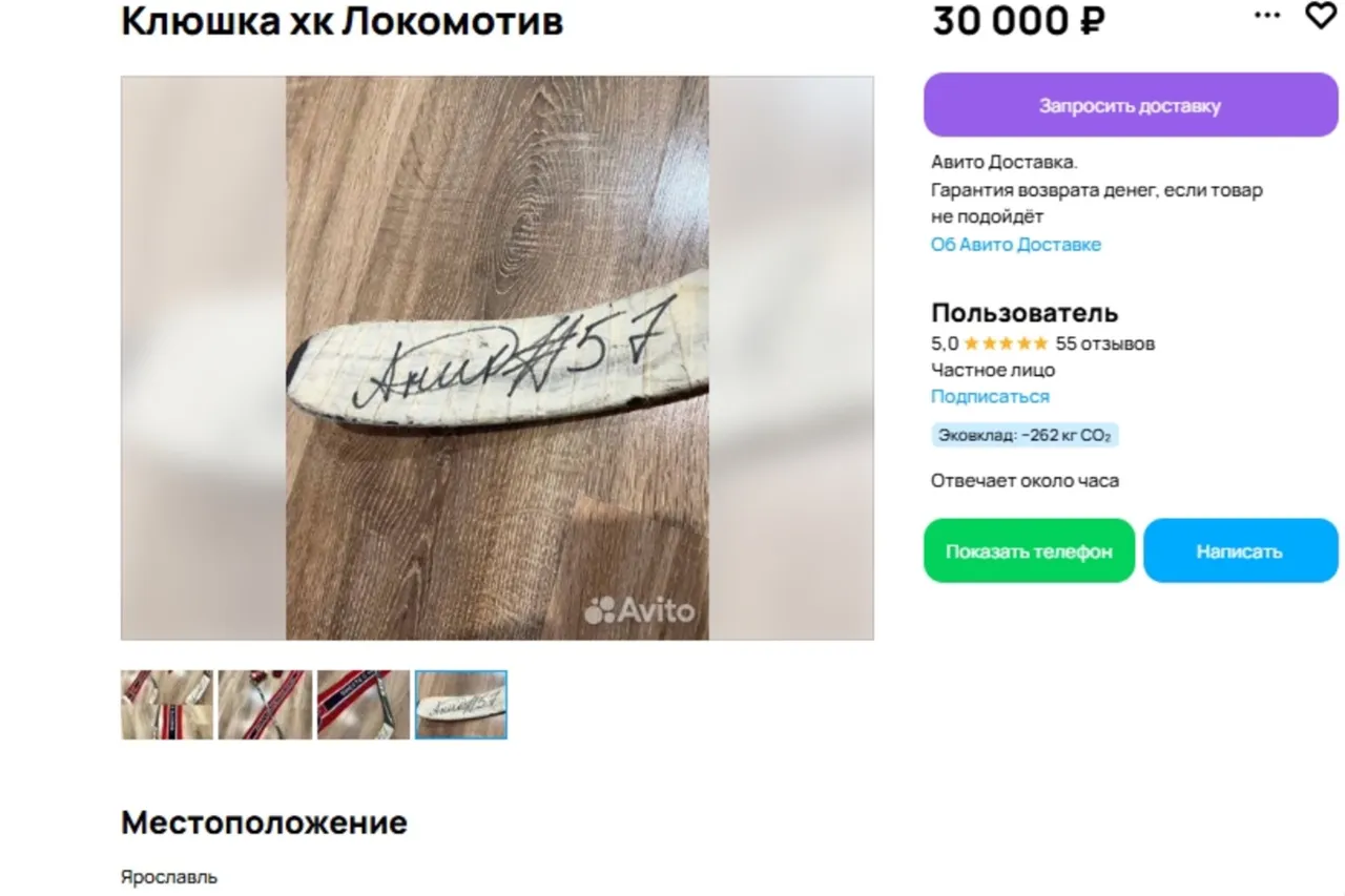 В Ярославле на сайте с объявлениями появился интересный товар. Сейчас там можно купить клюшку с автографом погибшего защитника Локомотива за 30 тысяч рублей. В объявлении указано, что за такую цену продается б/у вещь.