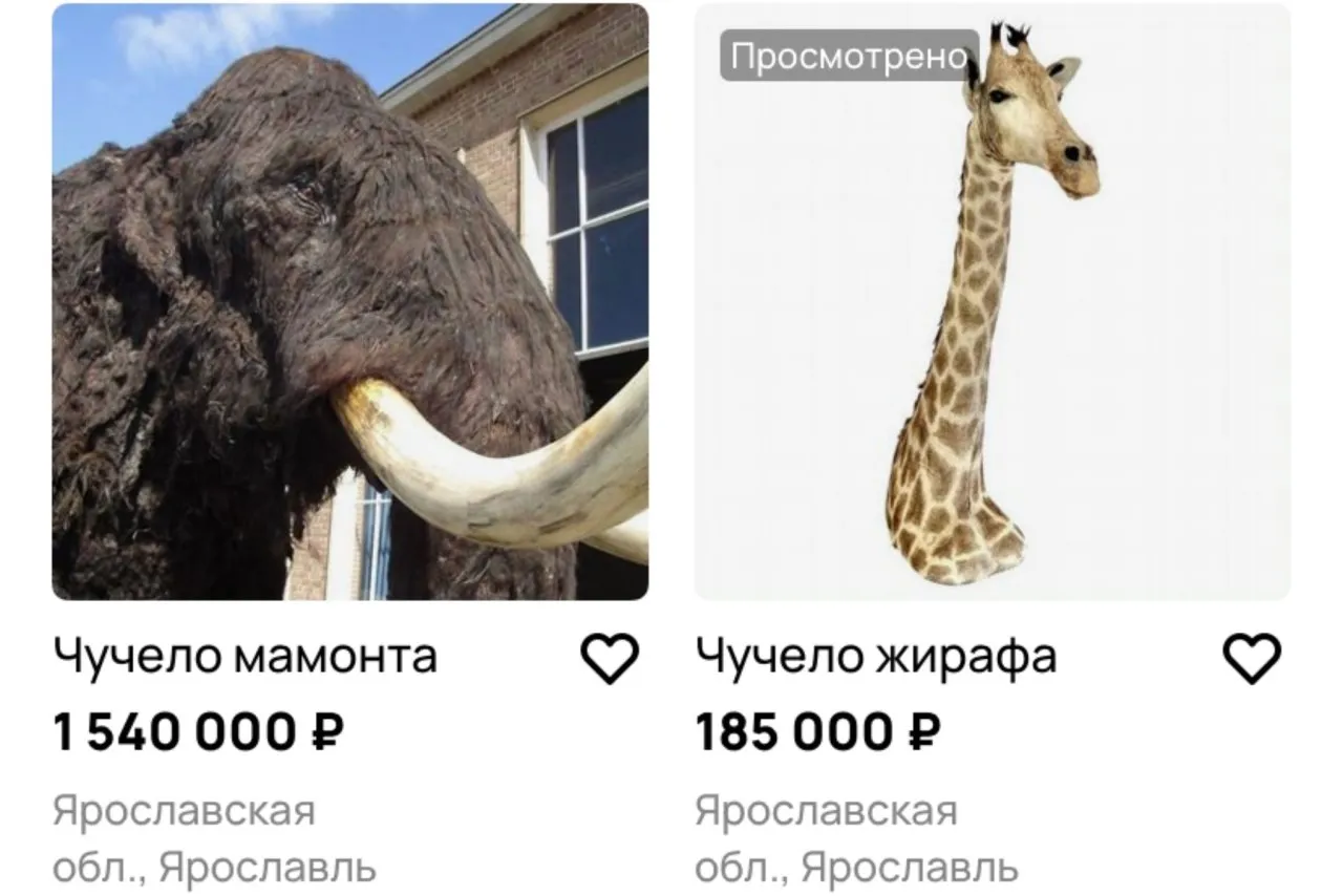 Также на странице автора объявления есть и другие интересные товары. Так, можно купить искусственное чучело мамонта за 1.5 миллиона рублей.