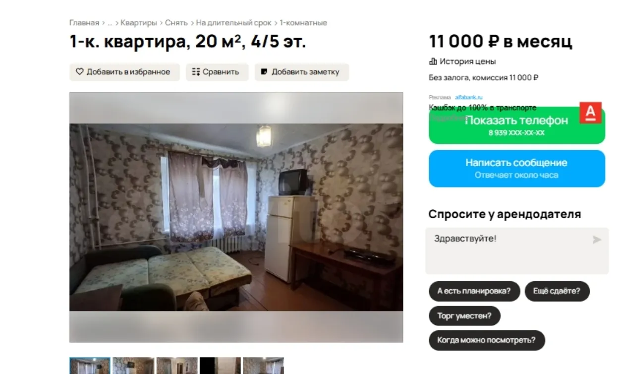 "Отличный бюджетный вариант. Есть необходимая мебель и техника для проживания", - рассказывает арендодатель.