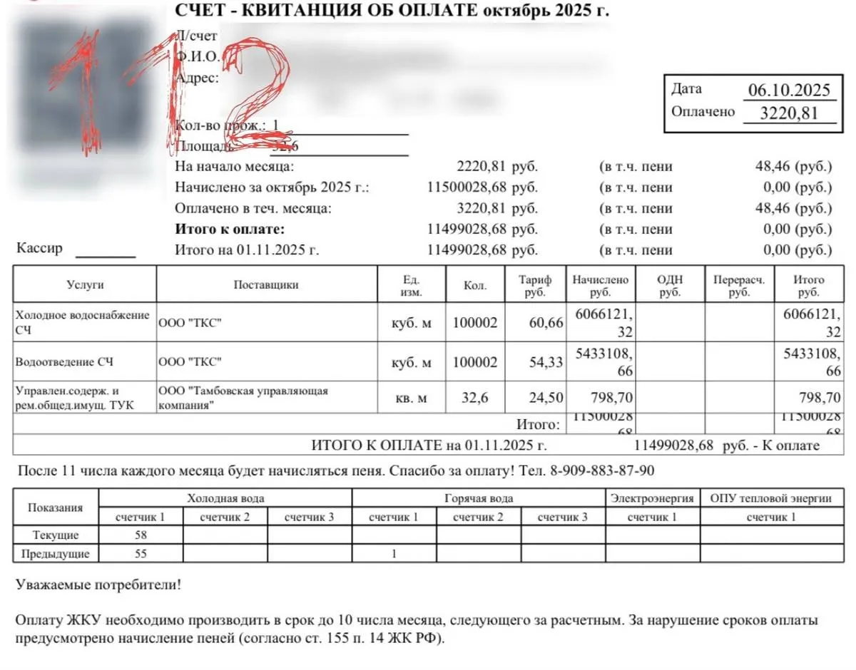 Ярославне выставили счет в 11.5 миллионов за холодную воду в квартире под Тамбовом