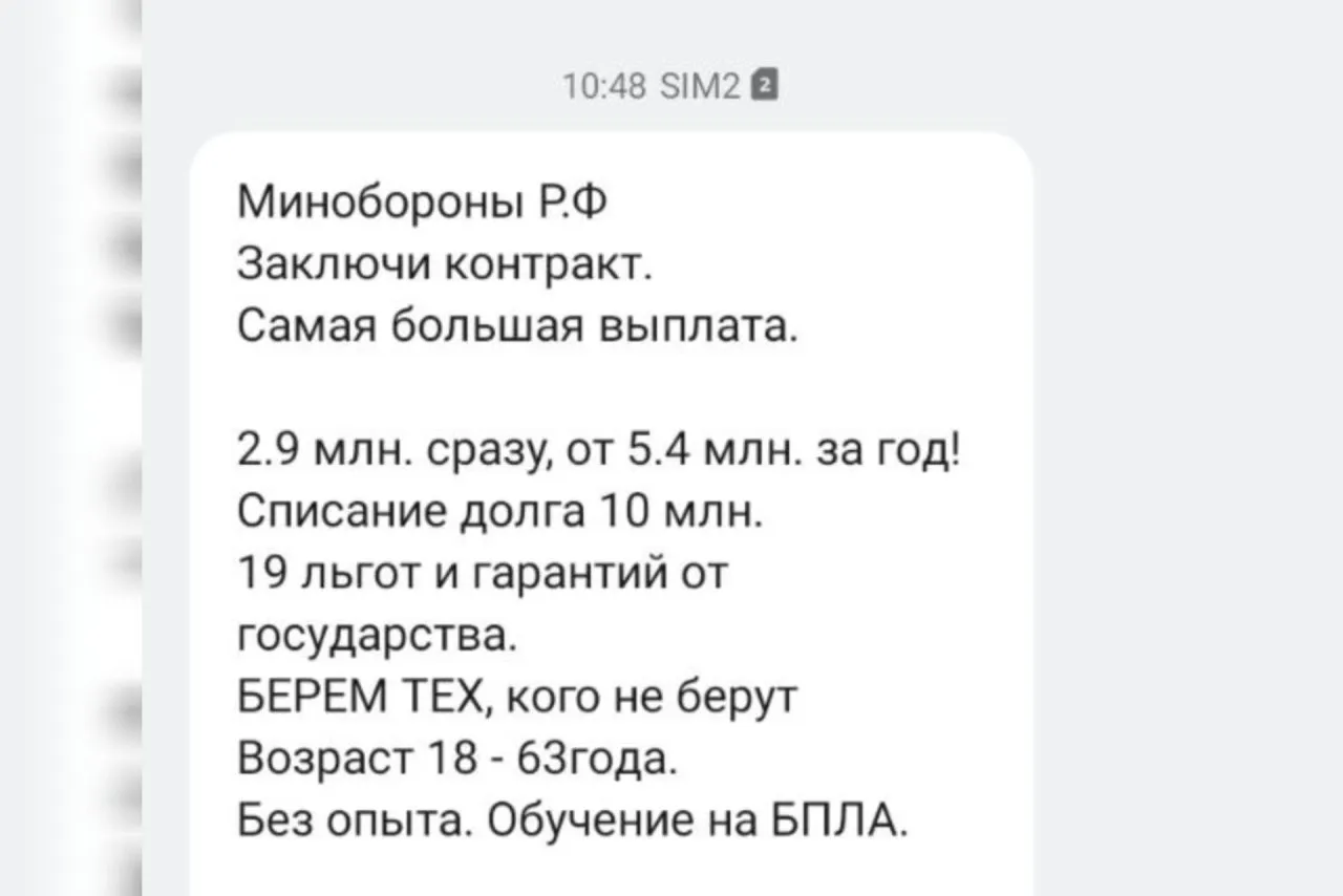 "Самая большая выплата... Списание долга... Возраст 18-63 года. Без опыта. Обучение на БПЛА... Проезд оплачивается. Сопровождение", - сообщением с редакцией Про Города поделился местный житель Анатолий.