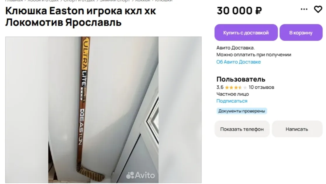 Клюшку с автографом бывшего игрока Локомотива продают на авито за 30 тысяч рублей