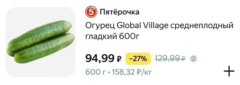 - огурцы свежие - 7.73% (166.18 рубля за килограмм);