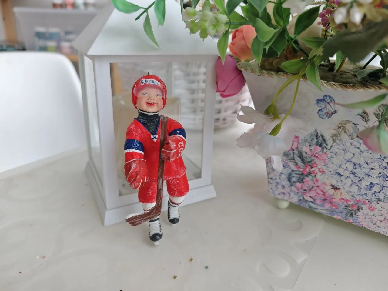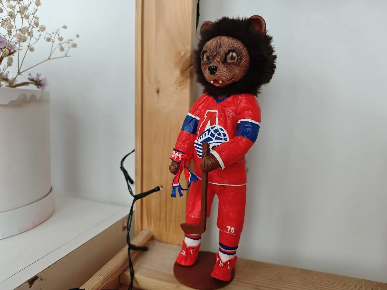 Оксана - заядлая хоккейная болельщица. Раньше ездила с "Локомотивом" на выездные матчи. Сейчас ходит с сыном на все домашние. Среди елочных игрушек, сделанных болельщицей, есть и маленький хоккеист, и талисман "Локомотива" мишка.