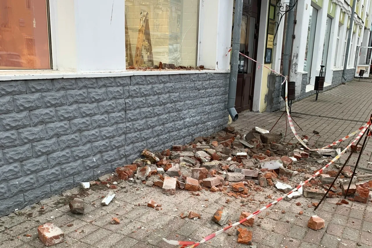 В центре Ярославля обрушились кирпичи с фасада здания