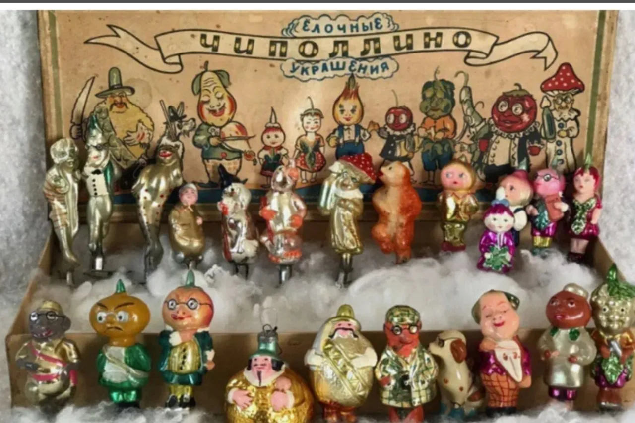 Одним из самых дорогих наборов из советского прошлого стал набор елочных игрушек "Чиполлино". Так, фигурка собаки-ищейки Держи-Хватай оценивается примерно в 40 тысяч рублей. А вот сам Чипллино стоит куда скромнее - порядка 1000 рублей. Тем временем, мастерица из Ярославля делает ватные елочные игрушки в советском стиле.