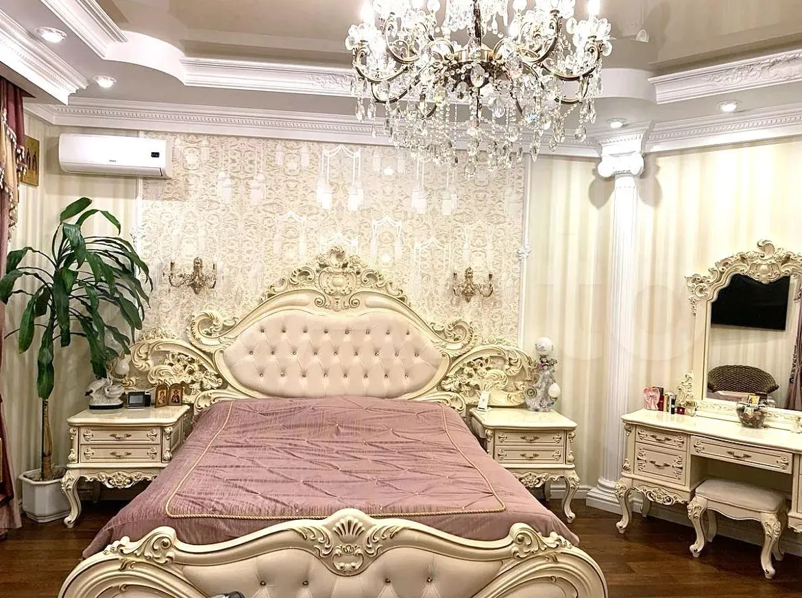 Выглядит жилье очень впечатляюще. Так, во всех спальнях можно увидеть вензеля, хрустальные люстры и резную деревянную мебель.