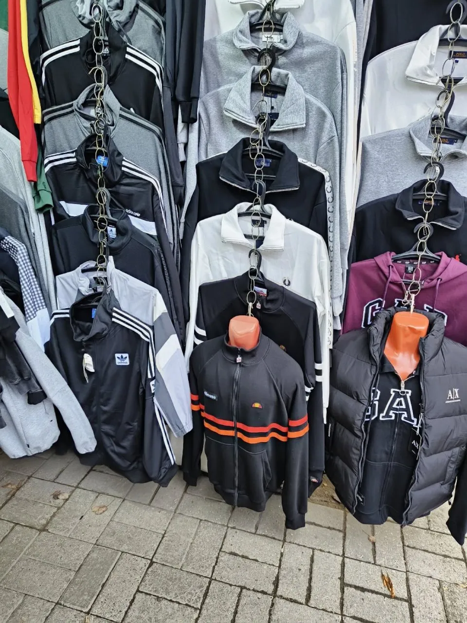 Практически на каждом шагу продают верхнюю одежду. Пуховики — реплики известных брендов.