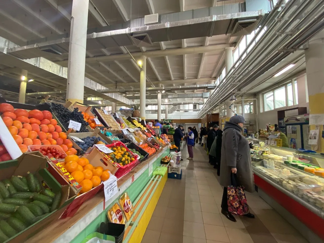 Внутри не так многолюдно, как на аналогичных районных рынках.