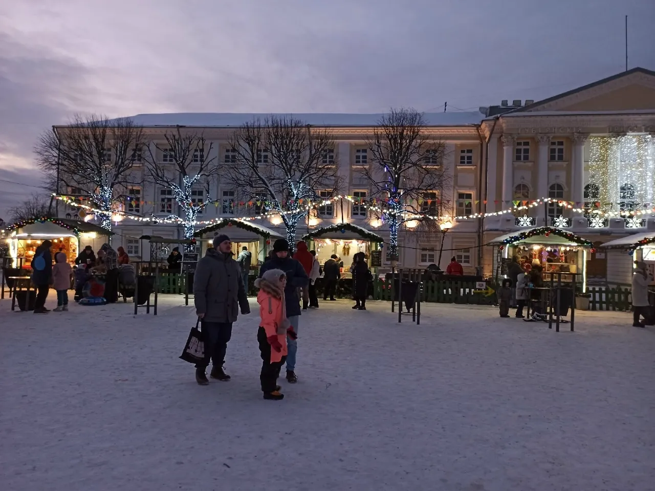 "На главной площадке - Советской площади разместятся все элементы новогоднего праздника. Наряду с катком, оформленным в общей новогодней стилистике, будут размещены элементы светового оформления. В том числе , новогодняя ель. Которая будет украшена фоновой подсветкой в теплых тонах, гирляндами, бусами, световым шатром диаметром 30 метров. Декоративные композиции 2026 и медведь установят рядом с елкой. Рядом с катком установят горку, новогоднюю ярмарку, купольные беседки, аттракционы, живые ели и медиаэкран.