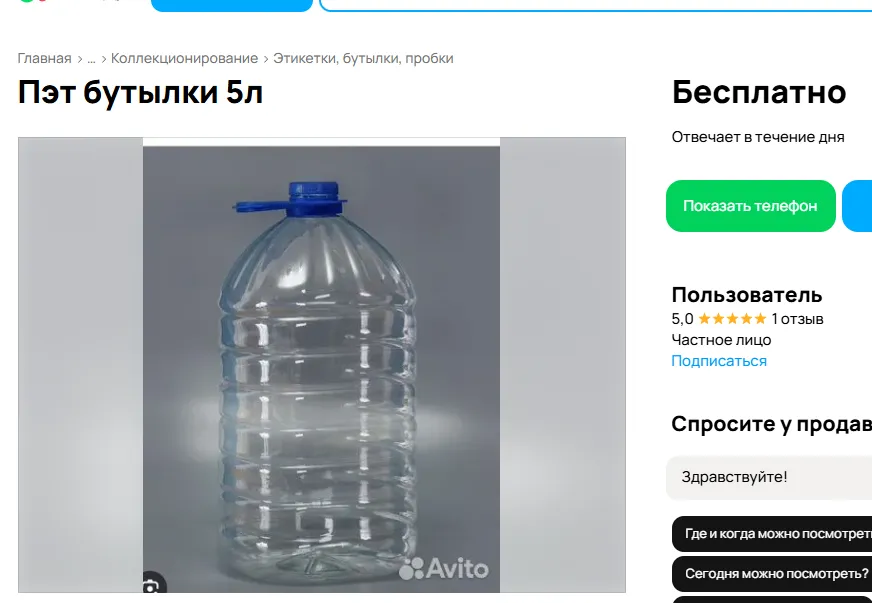 Пользователь без имени отдает 5-литровые пластиковые бутылки.