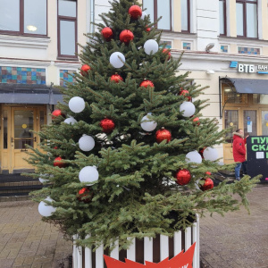 На улице Кирова установили живые елки и украсили шарами. В мэрии рассказали "Про Городу", что живые ели установлены за счёт спонсорских средств. В дальнейшем их должны высадить в городские парки.